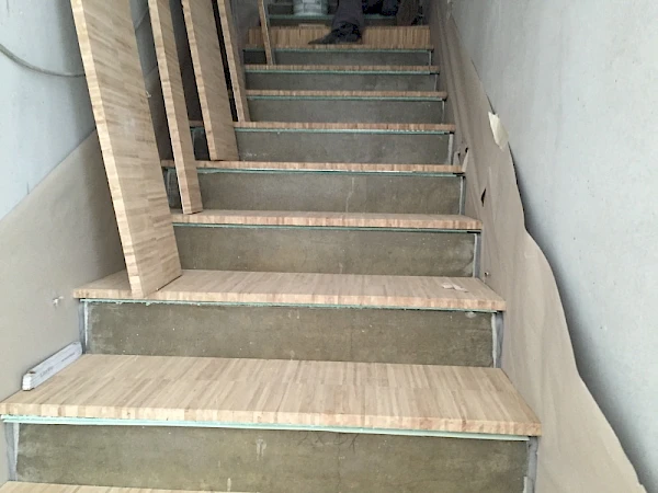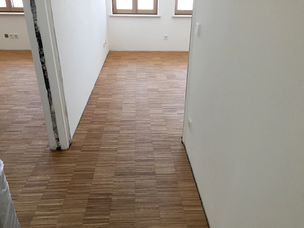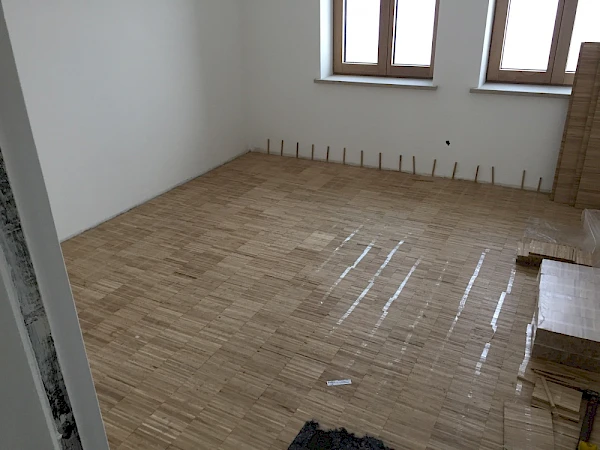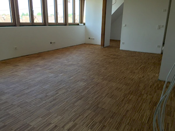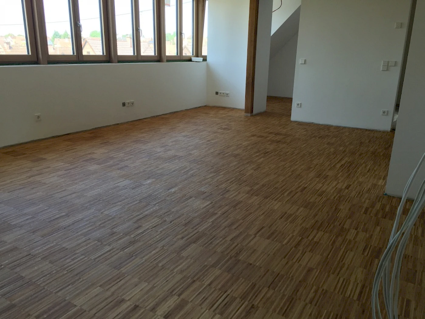 Auf einer aktuellen Baustelle im Großraum Stuttgart haben wir auf einer Bodenfläche von ca. 200qm einen neuen Parkettboden verlegt. In dem Wohnhaus wurde durchgehend auf über drei Etagen ein Industrieparkett Eiche (Holzmaterial) verlegt. Vor Beginn des Verlegens wurde der Estrich angeschliffen und grundiert. Zudem wurde eine Feuchtigkeitsmessung des Estrichs durchgeführt, um sicherzustellen, dass dieser trocken ist. Auf Basis der Messung konnten wir den neuen Parkettboden verlegen. Der Industrieparkett bzw. Hochkantlamellenparkett wurde außerdem auf den Treppenstufen verlegt. Der Preis pro Quadartmeter (qm) für den Industrieparkett variiert je nach Auswahl des Holzmaterials. Die Kosten für das Material und das Verlegen des Parkettbodens müssen je nach Bodenfläche individuell kalkuliert werden. Sie haben Fragen zu einem neuen Parkettboden und wollen ein indivduelles Angebot erhalten? Gerne können Sie uns anufen oder via E-Mail anschreiben. Gerne beraten wir Sie auch vorab in unserem Fachgeschäft in Schorndorf bei Stuttgart (große Auswahl an Böden) oder bei Ihnen vor Ort persönlich.