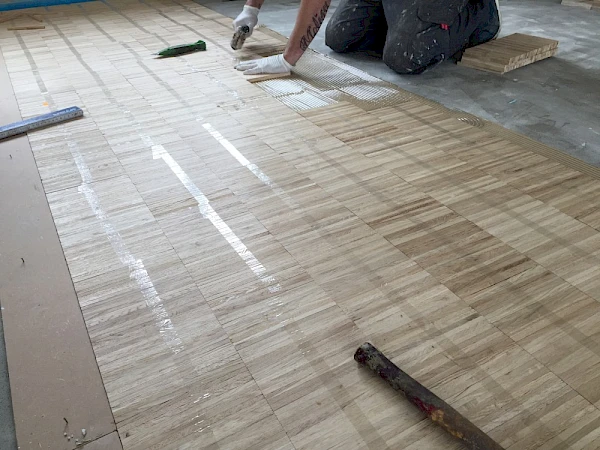 Schleifen, verlegen, ölen, reparieren oder pflegen von Fussböden.